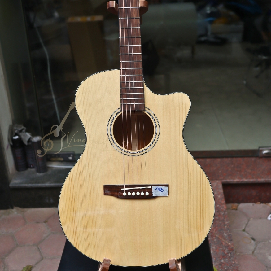 Đàn Guitar Acoustic Vinaguitar VG-D2 là mẫu guitar acoustic 100% gỗ thịt nguyên tấm, do Vinaguitar sản xuất trực tiếp tại xưởng. Cây đàn nổi bật với chất âm ấm áp, dễ chơi, nịnh tay, rất phù hợp cho người mới bắt đầu nhưng vẫn đáp ứng tốt nhu cầu chơi lâu dài, đệm hát và luyện tập nghiêm túc.