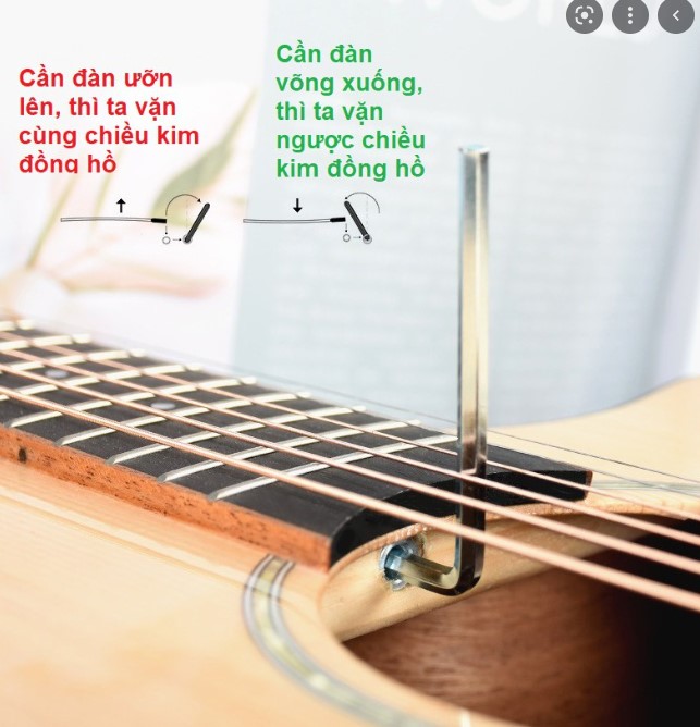 Đặc biệt đàn có ty chống cong cần 2 chiều vô cùng cần thiết cho các bạn mới chơi( ty chỉnh cần nằm ở dưới cần đàn, có thể chỉnh qua lỗ lục lăng 4mm dưới lỗ thoát âm), đàn được lắp dây cỡ nhỏ số 9 hoặc 10, tuy tiếng không vang nhưng bấm rất nhẹ, cần đàn nhỏ dễ bấm phù hợp với những người mới chơi muốn tập đàn mà sợ đau tay