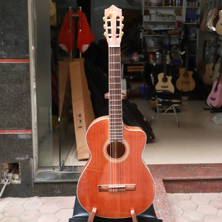 Ngoại hình đẹp mắt – Dễ chơi – Âm thanh ngọt và ấm, đây là mẫu guitar classic gỗ thịt được Vinaguitar sản xuất trực tiếp tại xưởng, phù hợp cho người mới bắt đầu đến chơi lâu dài.