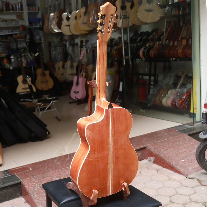 Đàn được làm 100% từ gỗ thịt nguyên tấm, xử lý kỹ lưỡng, cho độ bền cao và âm thanh ổn định theo thời gian – mua một lần, dùng lâu dài.