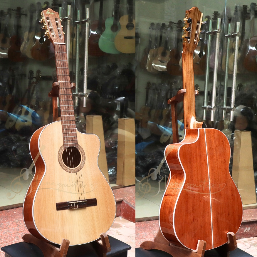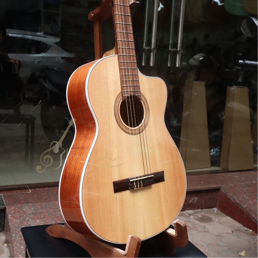 Ngoại hình đẹp mắt – Dễ chơi – Âm thanh ngọt và ấm, đây là mẫu guitar classic gỗ thịt được Vinaguitar sản xuất trực tiếp tại xưởng, phù hợp cho người mới bắt đầu đến chơi lâu dài.