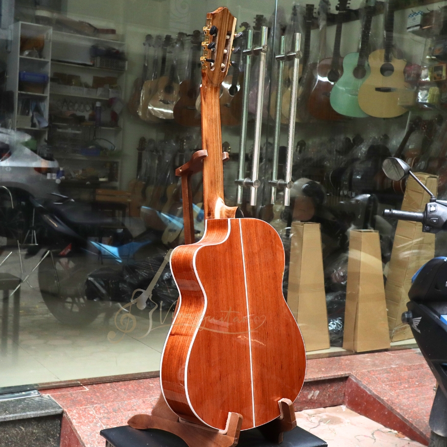 Đàn được làm 100% từ gỗ thịt nguyên tấm, xử lý kỹ lưỡng, cho độ bền cao và âm thanh ổn định theo thời gian – mua một lần, dùng lâu dài.