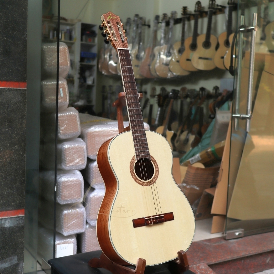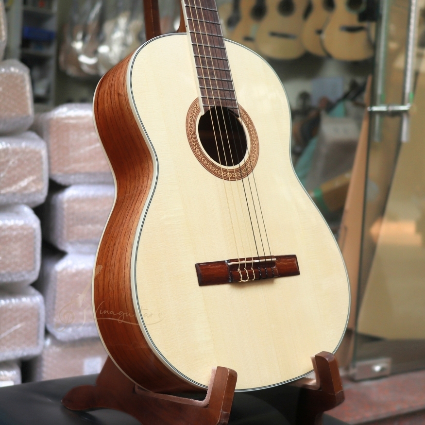 Ngoại hình đẹp mắt – Dễ chơi – Âm thanh ngọt và ấm, đây là mẫu guitar classic gỗ thịt được Vinaguitar sản xuất trực tiếp tại xưởng, phù hợp cho người mới bắt đầu đến chơi lâu dài.