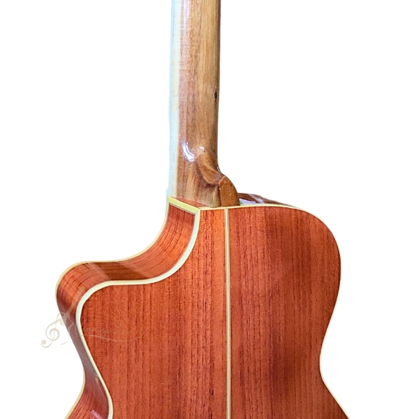 | Lưng & hông (Back/Sides) | Gỗ Hồng Đào nguyên tấm (Nu kỹ) |