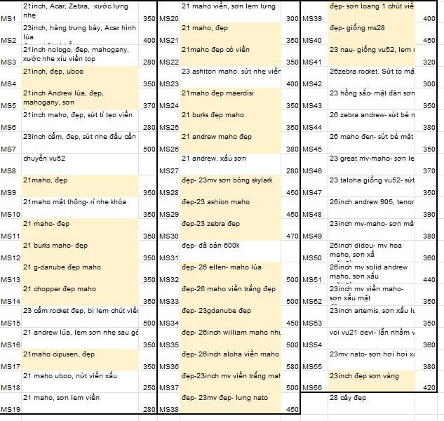Những mẫu có đánh dấu bôi màu vàng là những mẫu đẹp