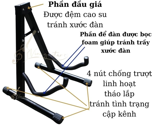 - Giá để đàn guitar chống trượt và điều chỉnh được kích thước.