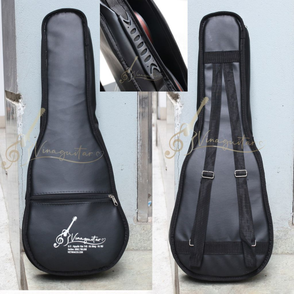 Bao da 6 lớp của shop thiết kế riêng của Vinaguitar. 2 quai đeo cực xịn, bao dày 6 lớp, khóa chắc chắn mút chống sock, đường may cực kì tỉ mỉ tinh tế, có quai xách.