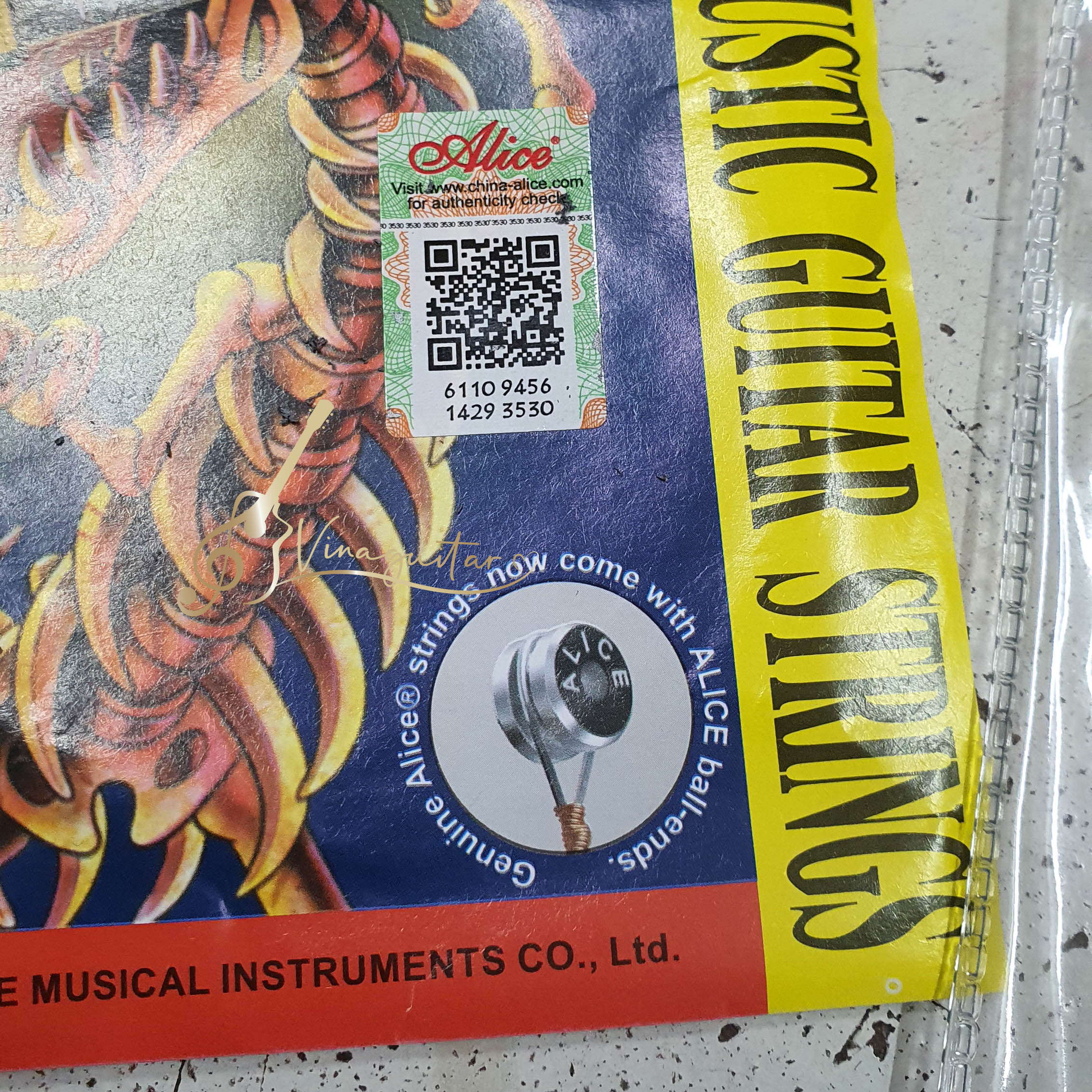 Dây Alice chính hãng sẽ có mã QRcode đầy đủ sau lớp giấy bạc để người mua có thể kiểm tra, chỉ cần cạo phần giấy bạc đi rồi quét, hệ thống sẽ đưa link và thông báo sản phẩm chính hãng